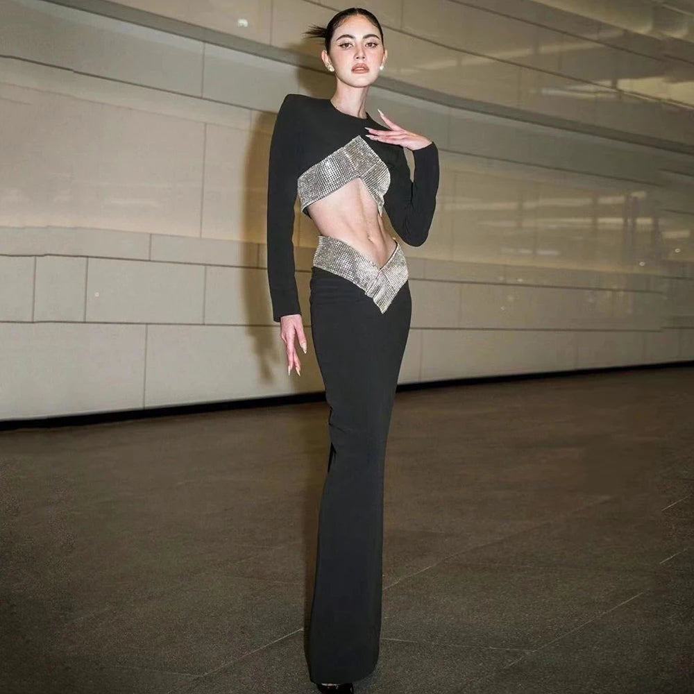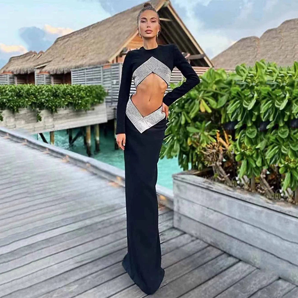 Sets Beading Top Long Skirt Two Pieces Set Elegant Party Evening Sets