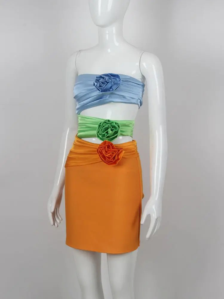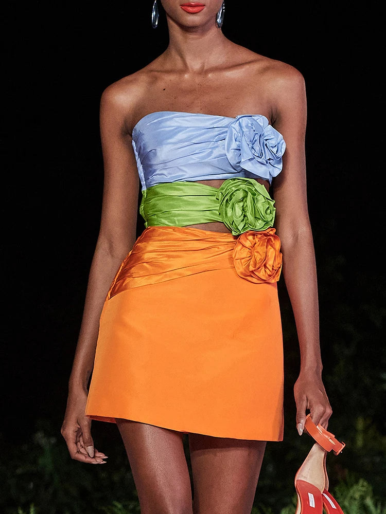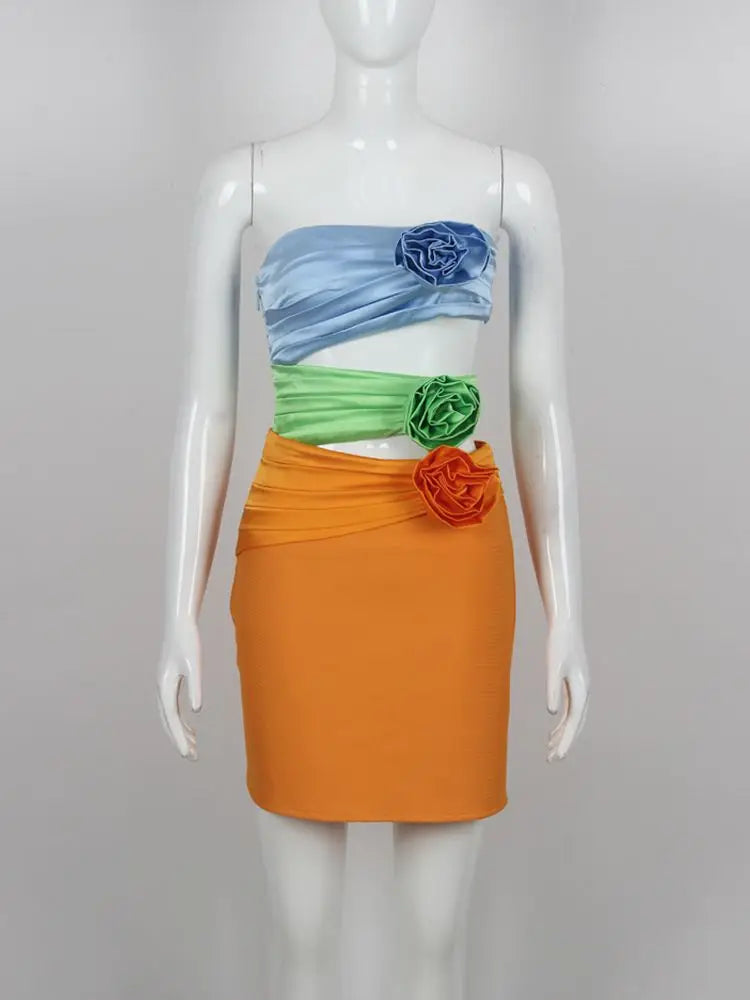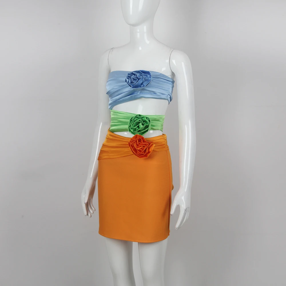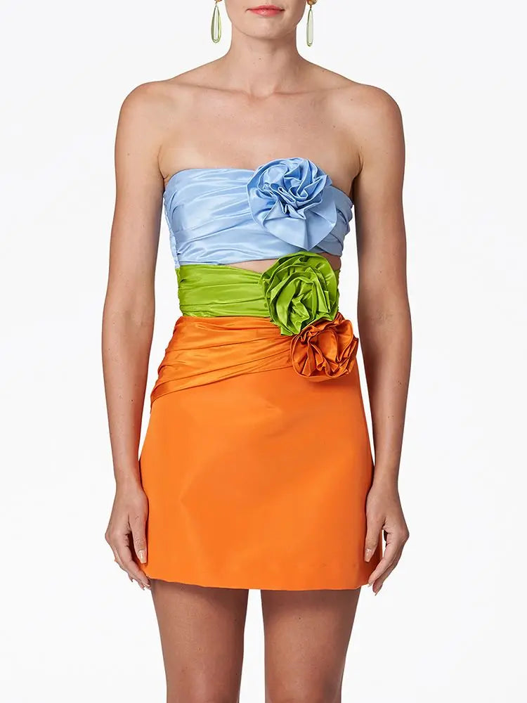Strapless Flower Pleated Tight Fit Mini Dress Elegant Celebrity Party Dress