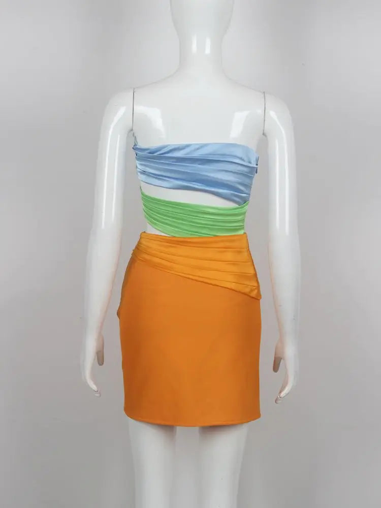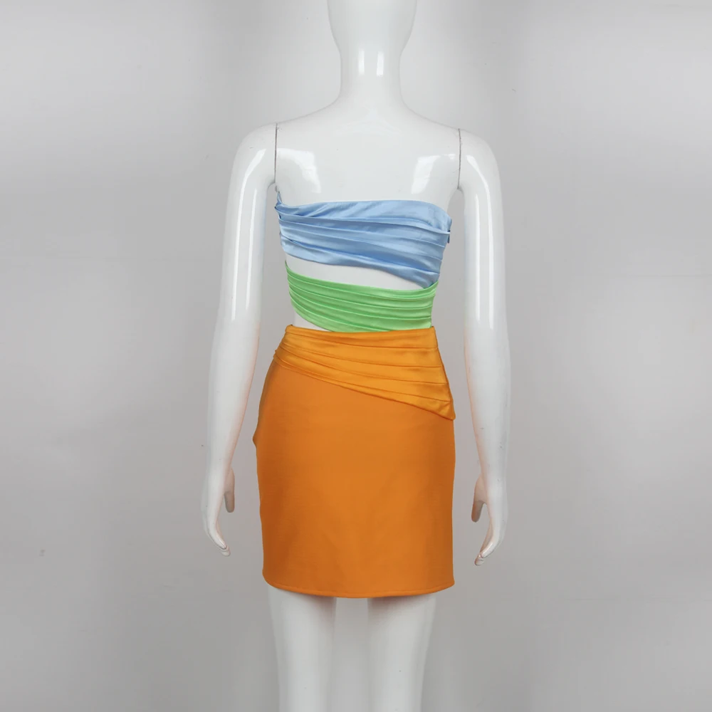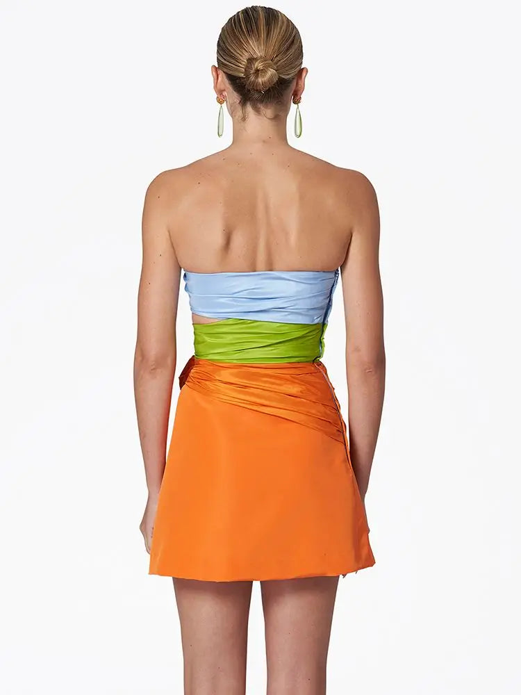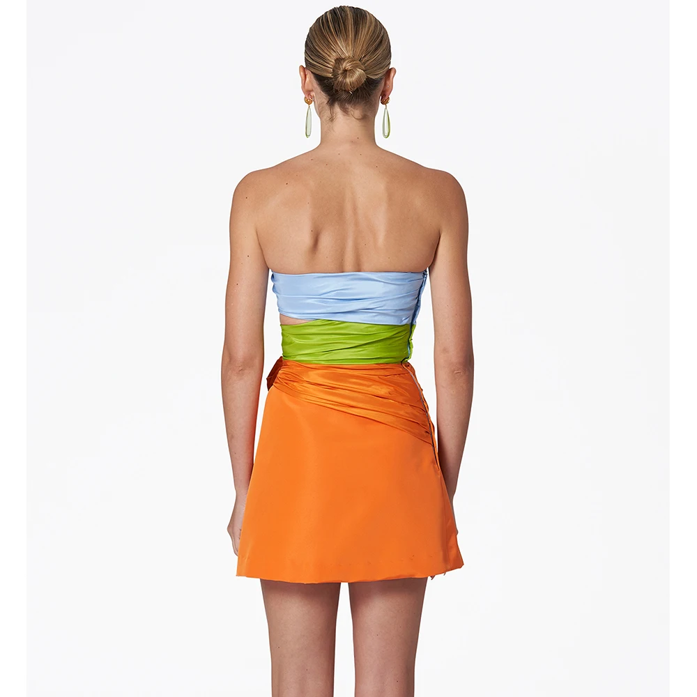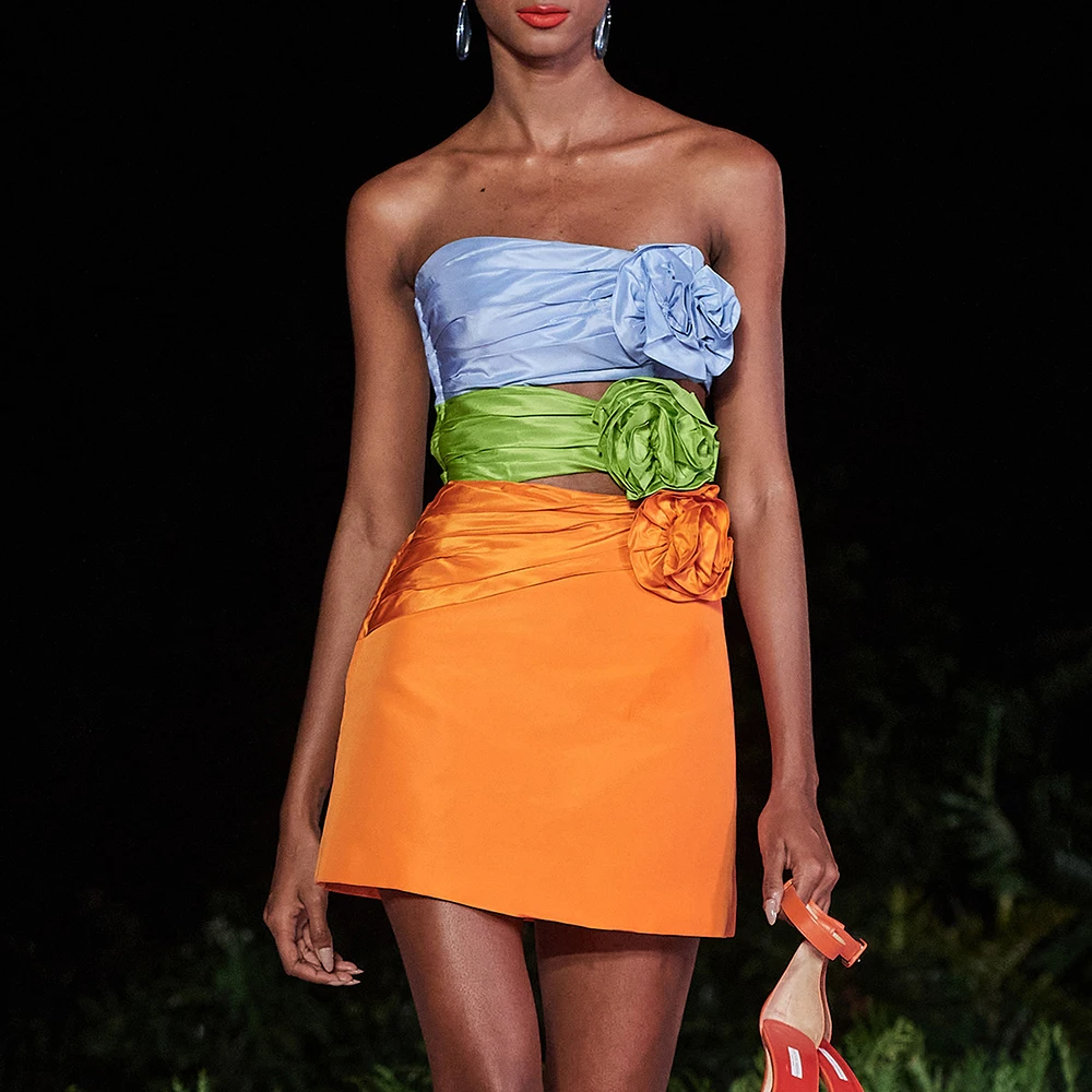 Strapless Flower Pleated Tight Fit Mini Dress Elegant Celebrity Party Dress