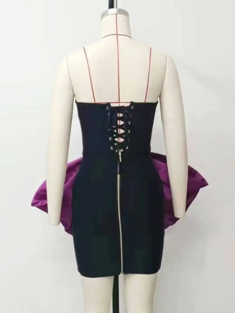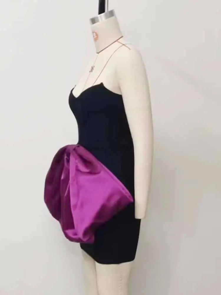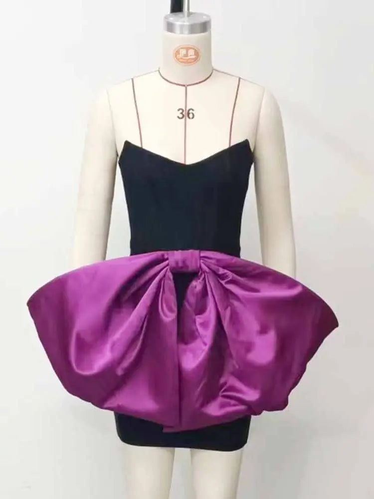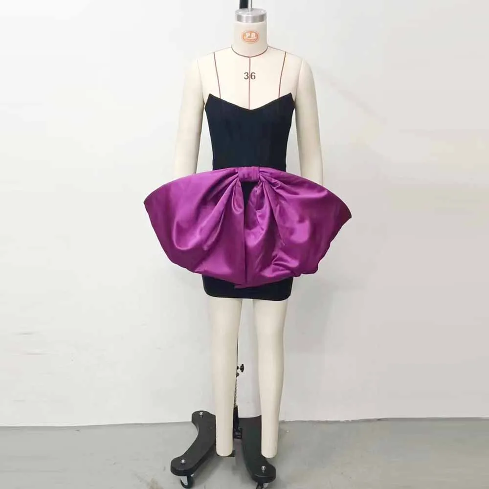 Strapless Color Matching Tight Bandage Dress Mini Big Bow Elegant Celebrity Party Dress