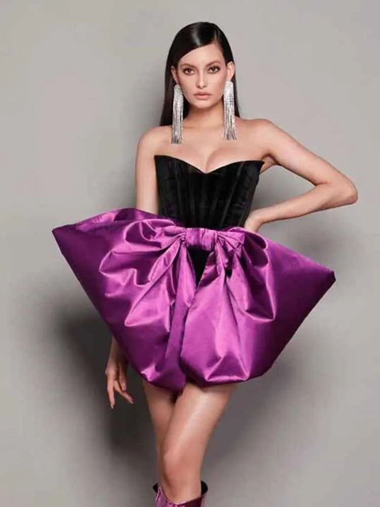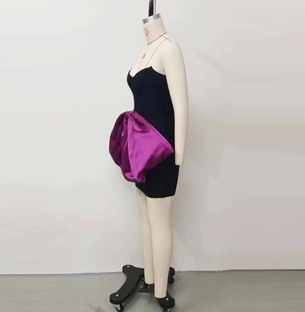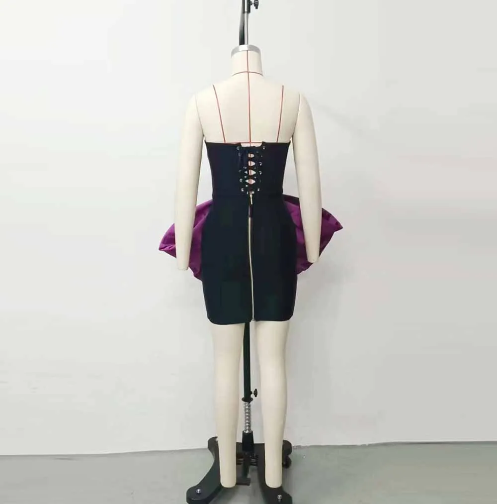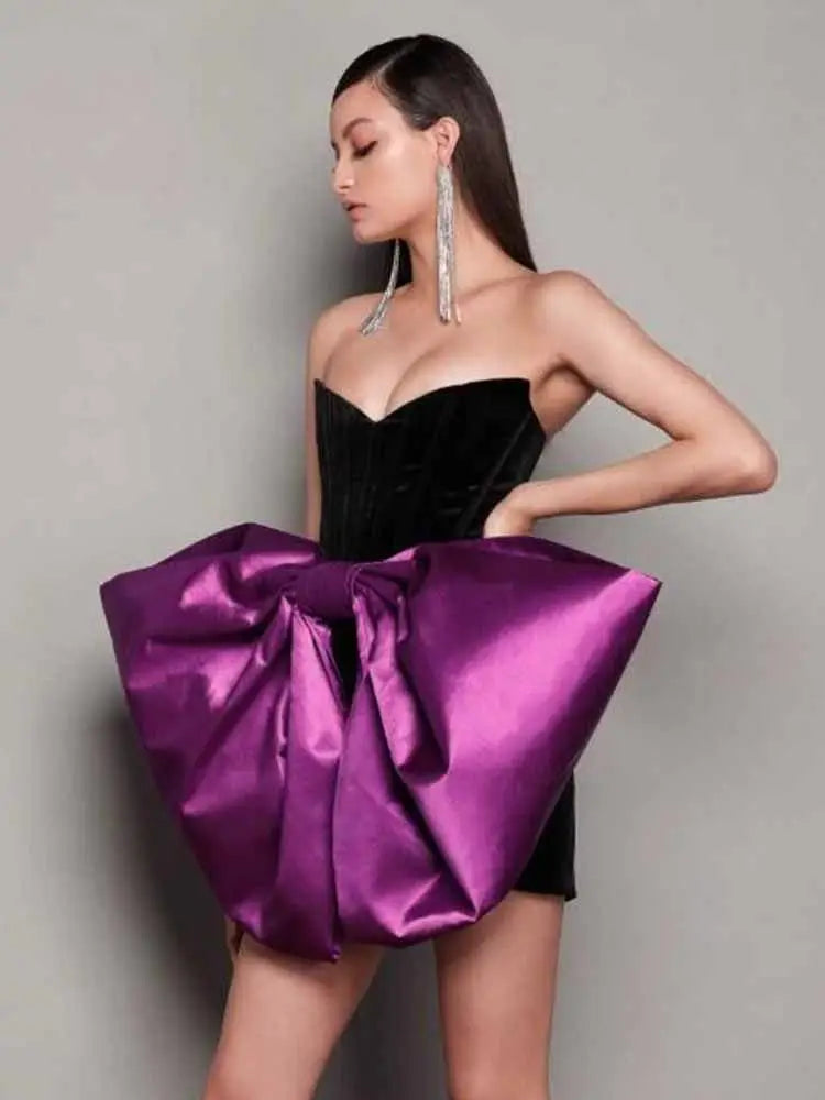 Strapless Color Matching Tight Bandage Dress Mini Big Bow Elegant Celebrity Party Dress