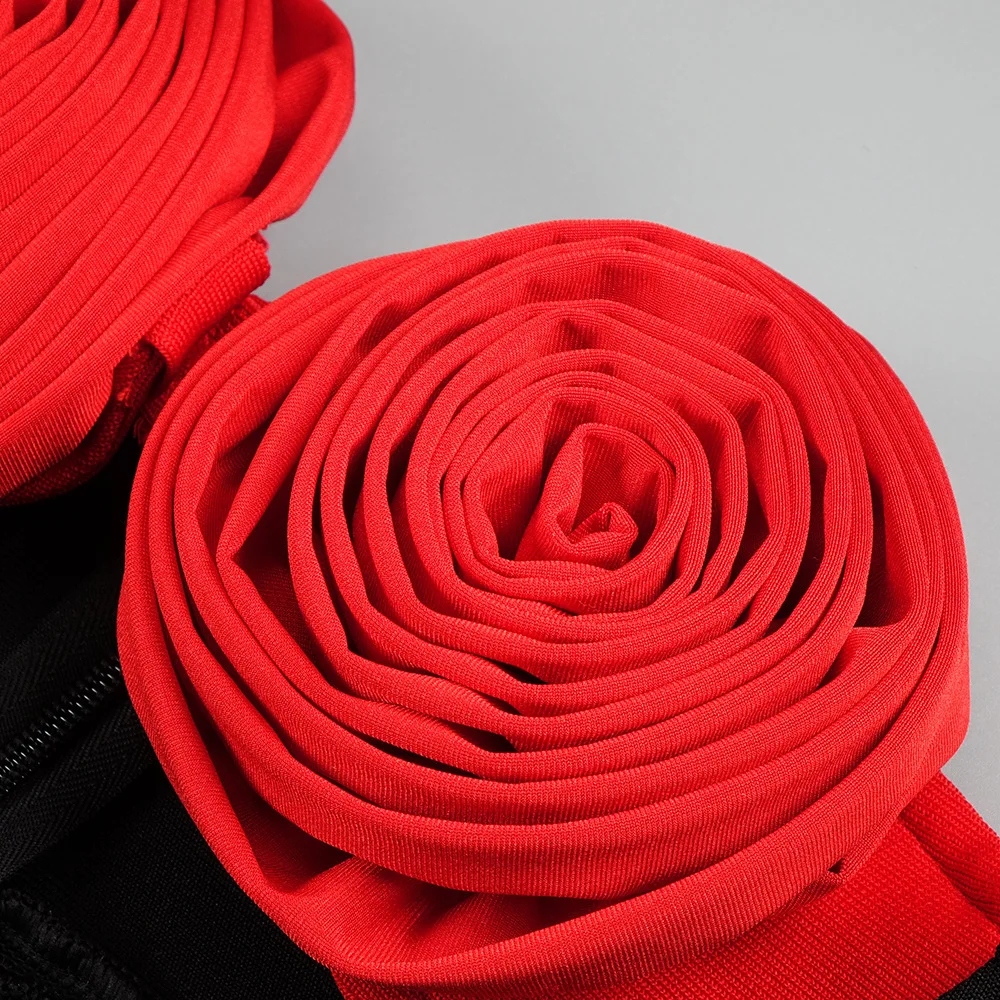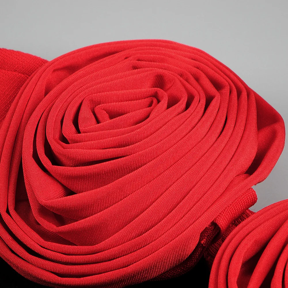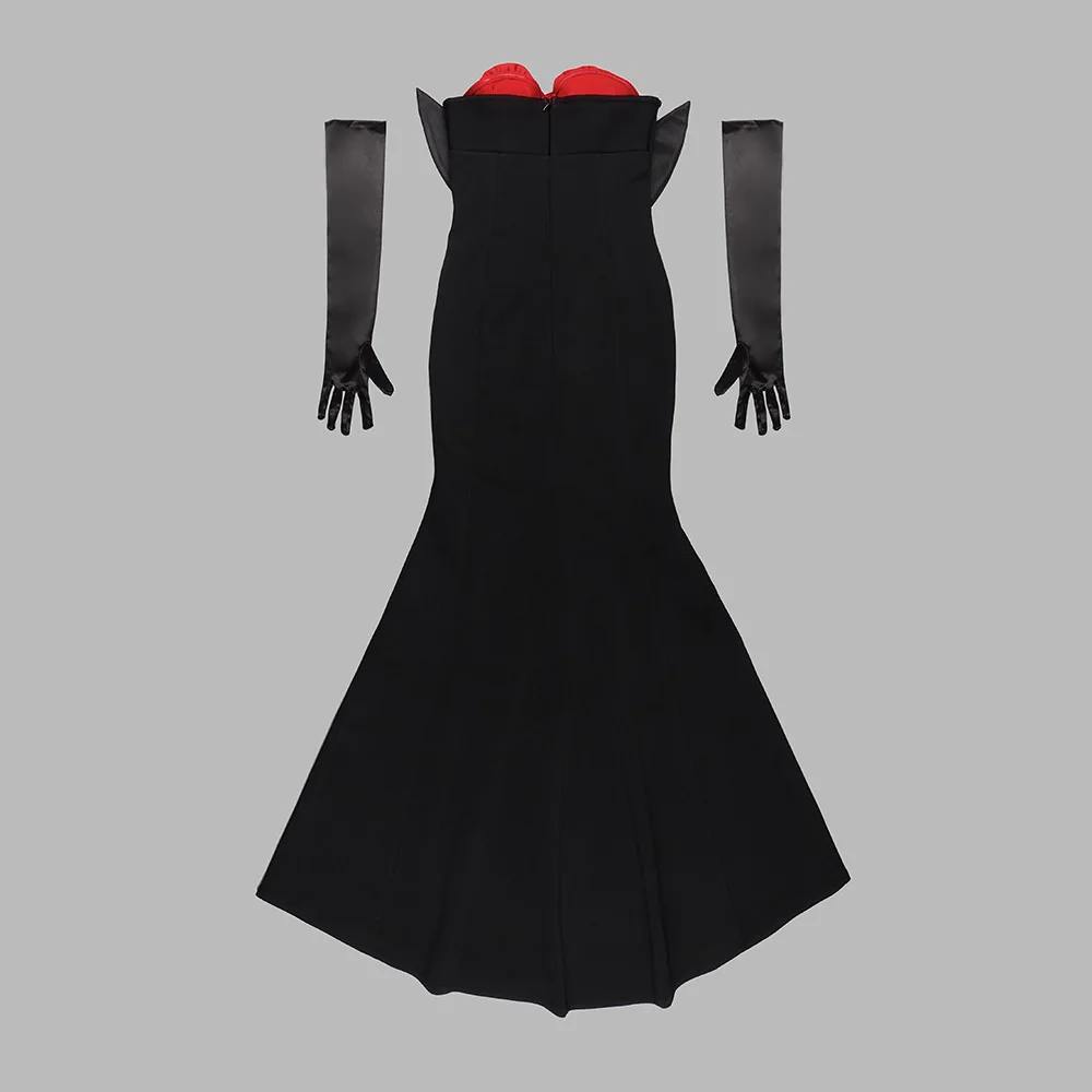Luxury 3D Flower Strapless Velvet Gloves Long Sleeve Black Bandage Mermaid Evening Dress Vestido