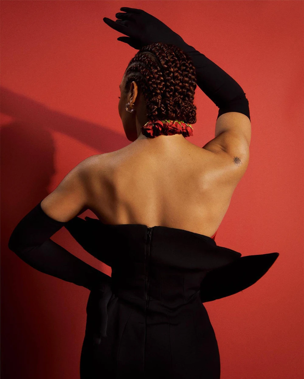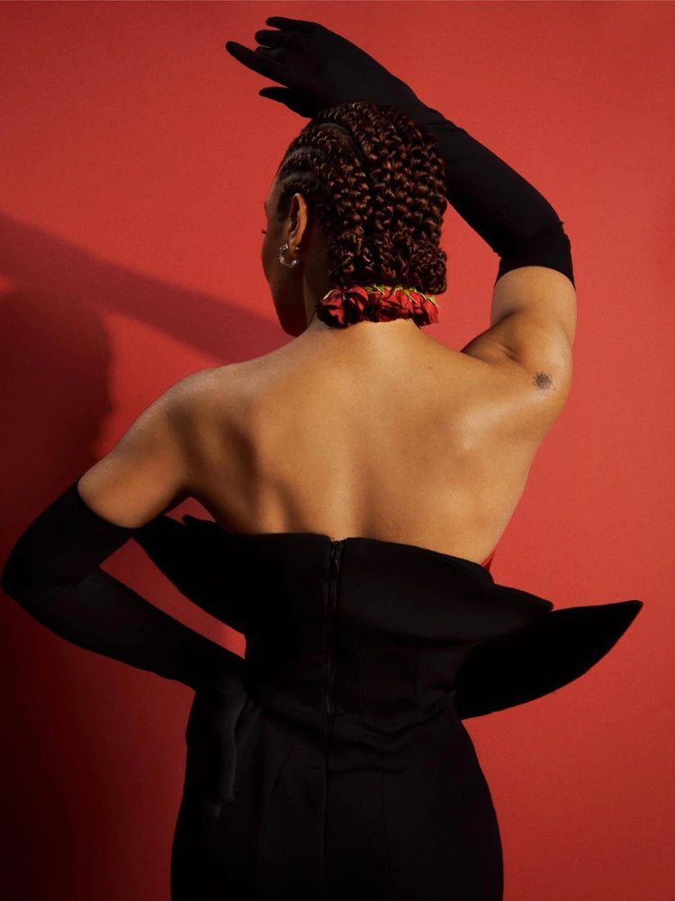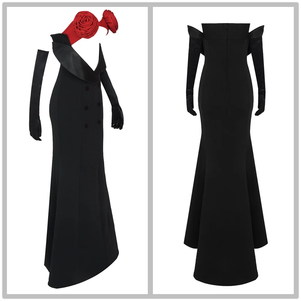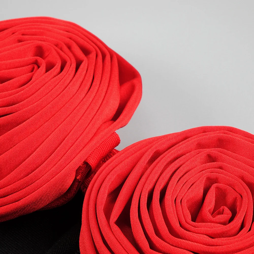 Luxury 3D Flower Strapless Velvet Gloves Long Sleeve Black Bandage Mermaid Evening Dress Vestido