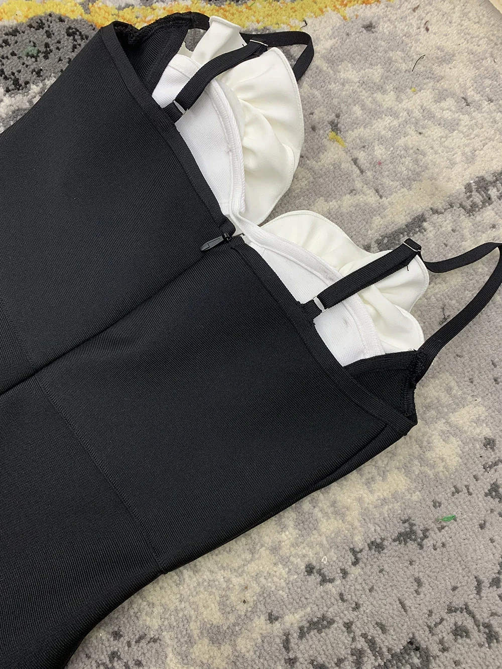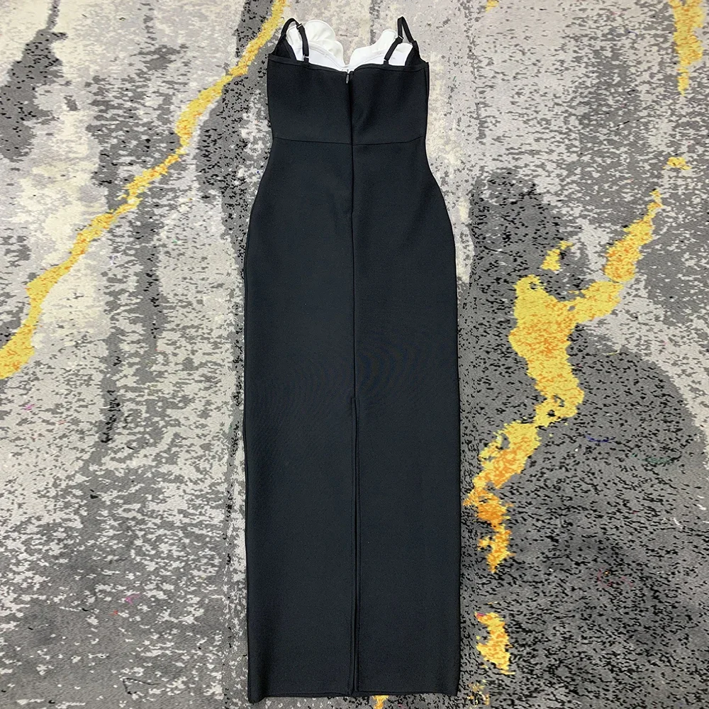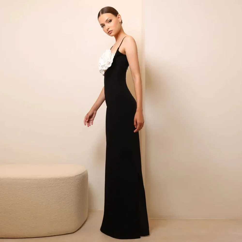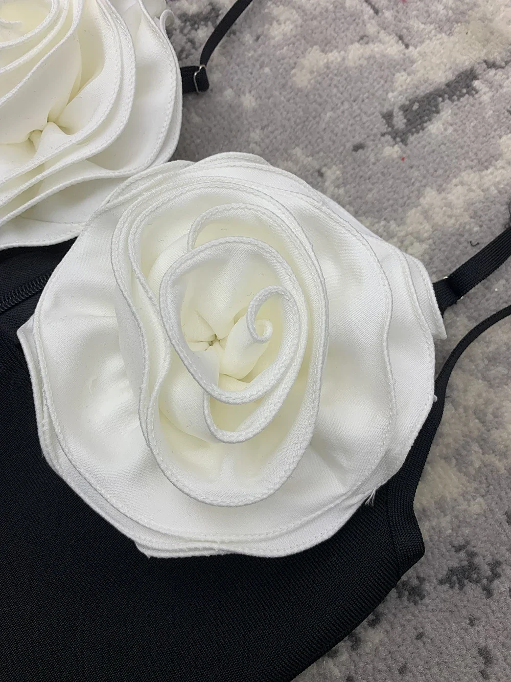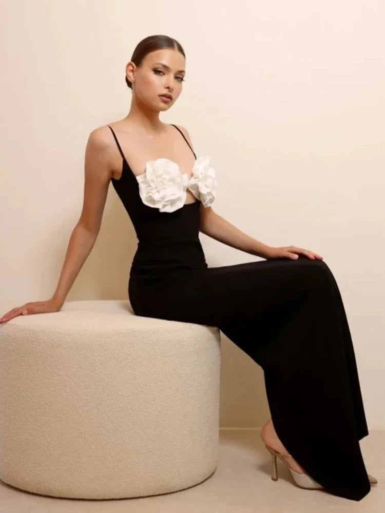 Hollow out Italian Noodle Strap 3D Flower Design Bandage Long Dress