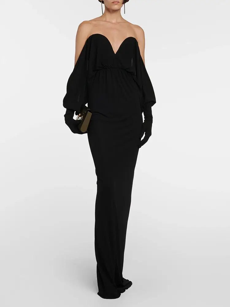 New Women's Wear Black Sexy One Piece Off Shoulder Gloves Black Long Dress Elegant Celebrity Party Evening Dress