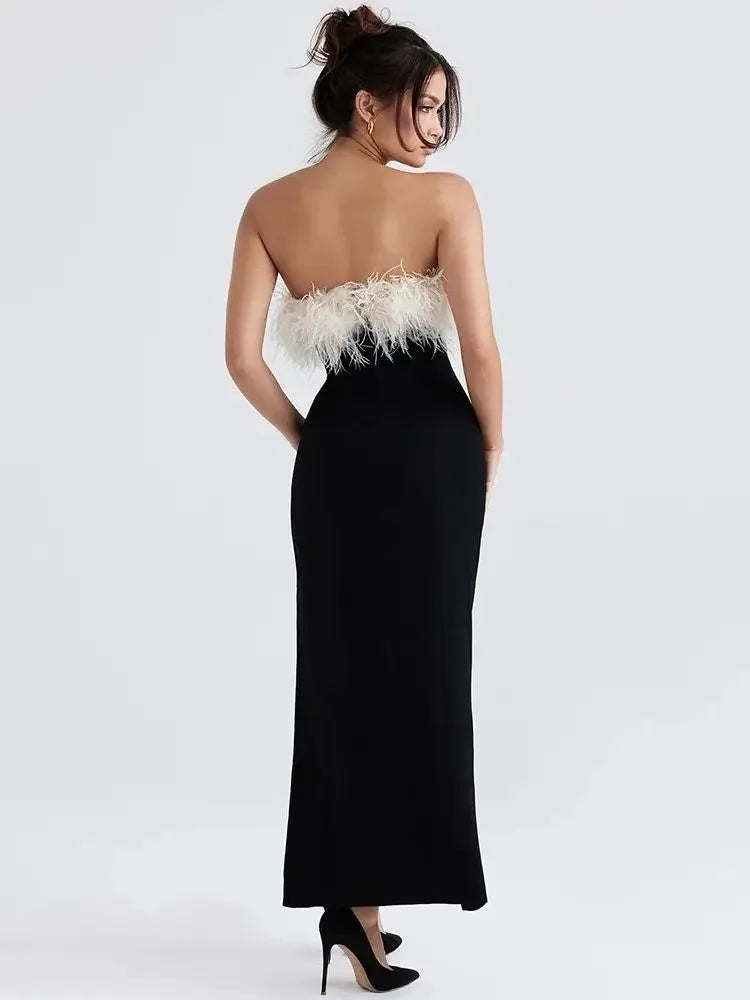 Evening Party Long Tight Bodycon Elegant Feather Strapless Side Split Birthday Club Clothing