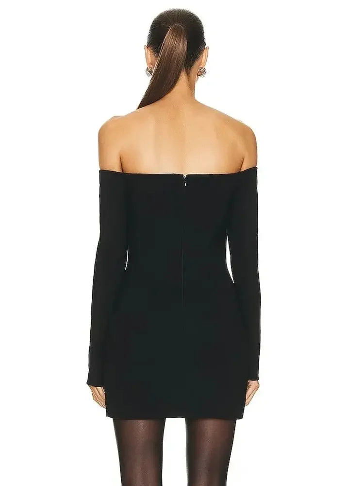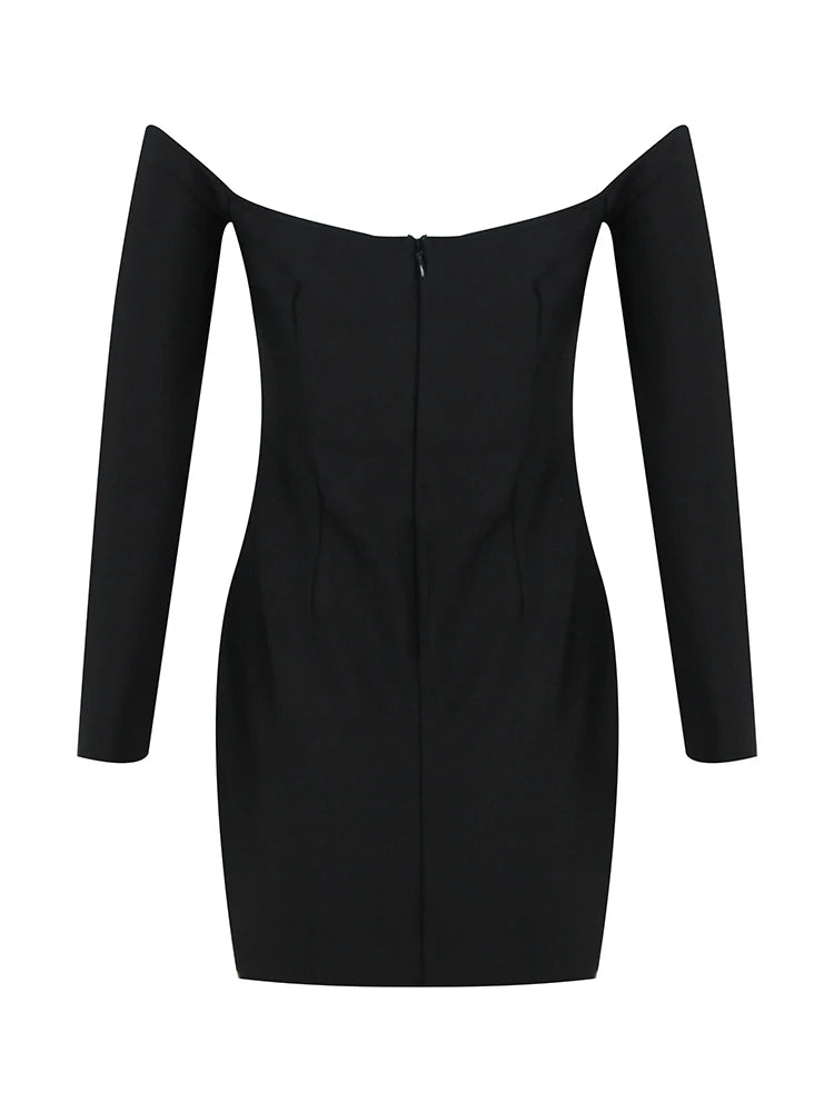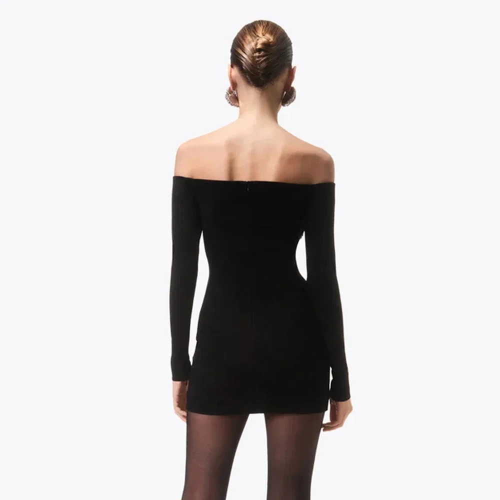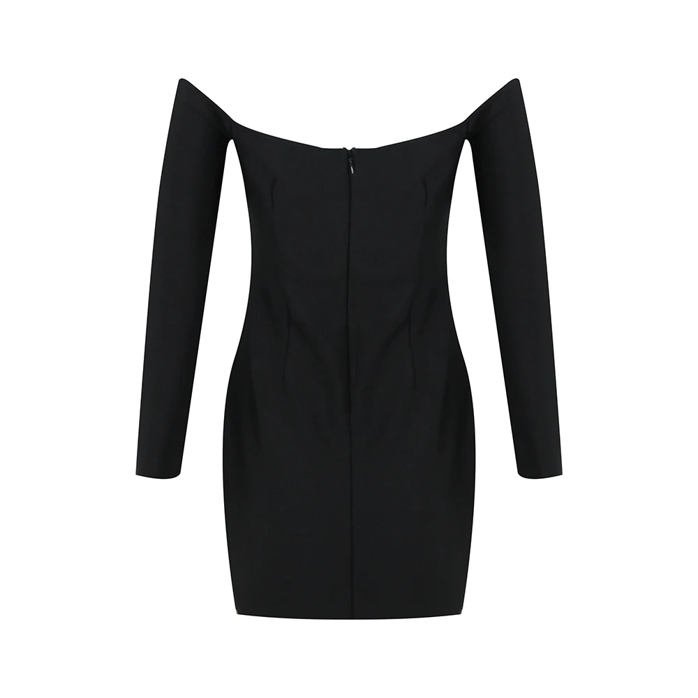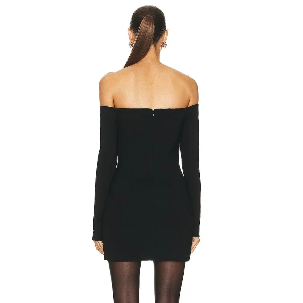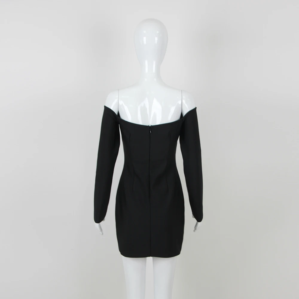 New Luxury Beaded Diamond Off Shoulder Long Sleeve Party Dress Bodycon Bandage Black Mini Dress