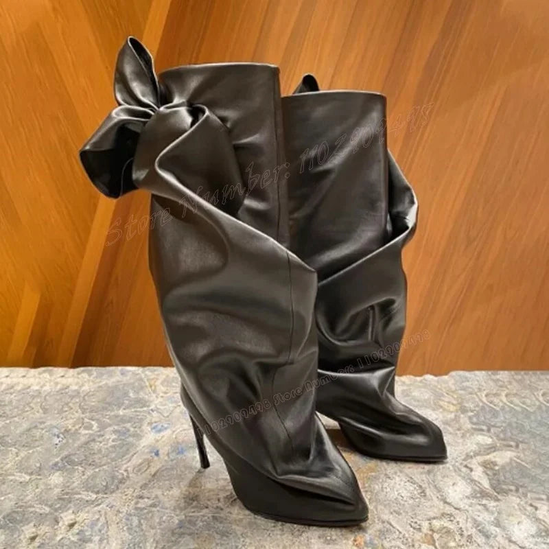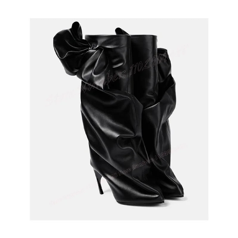Black Stange Style Heels Pleated Boots