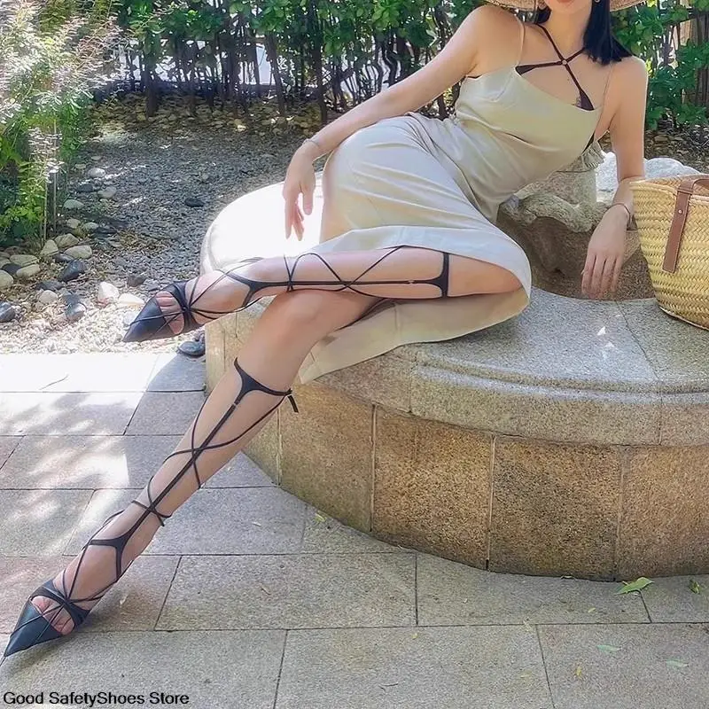 Cross Strap Sandals Women Boots Summer Thin High Heels Pointy Toe