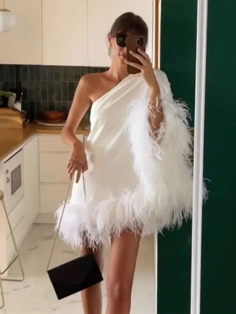 Elegant Fur Collar Single Long Sleeve Body-shaping Mini Dresses