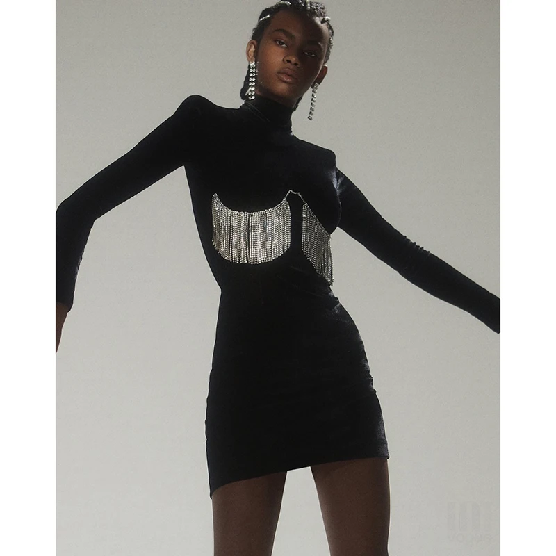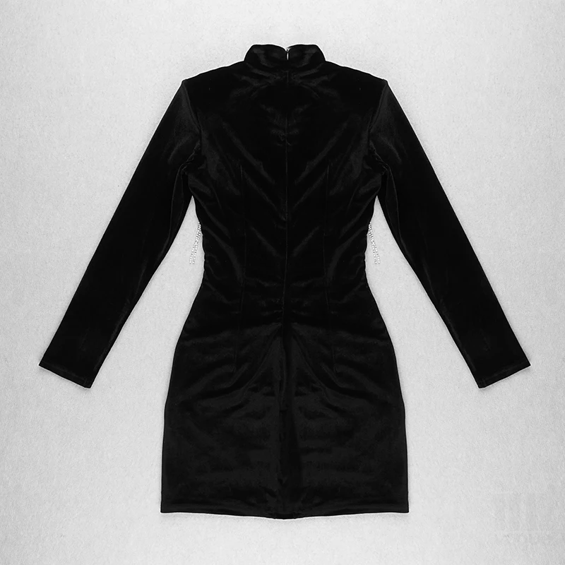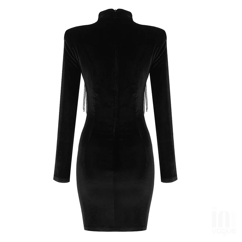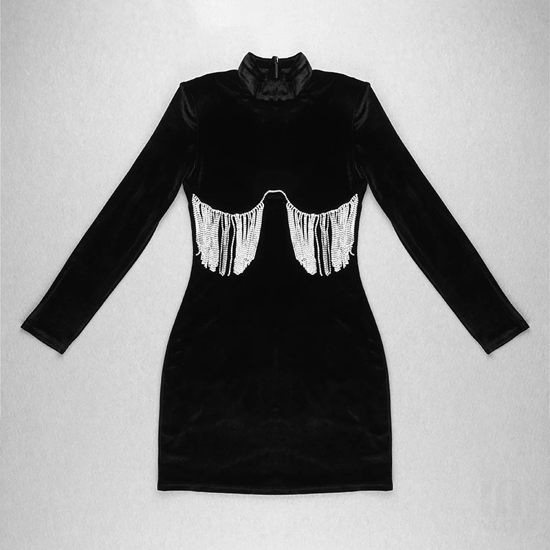 Diamonds Tassel Velvet Long Sleeve Mini Vintage Vestidos Dresses