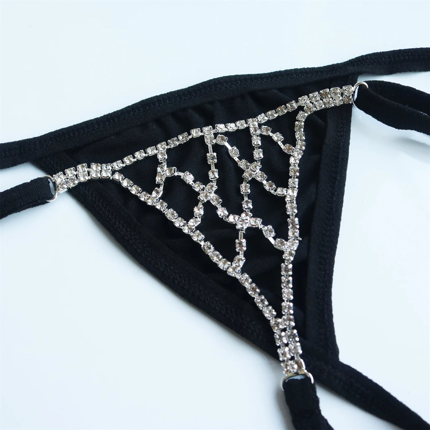 Rhinestone Mesh Underwear Exaggerated Body Chain Underwear