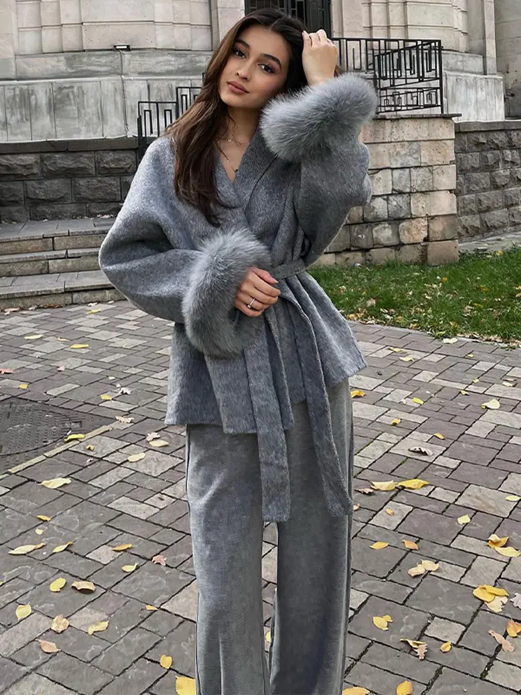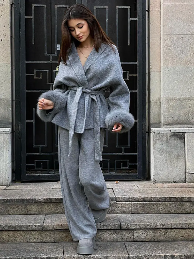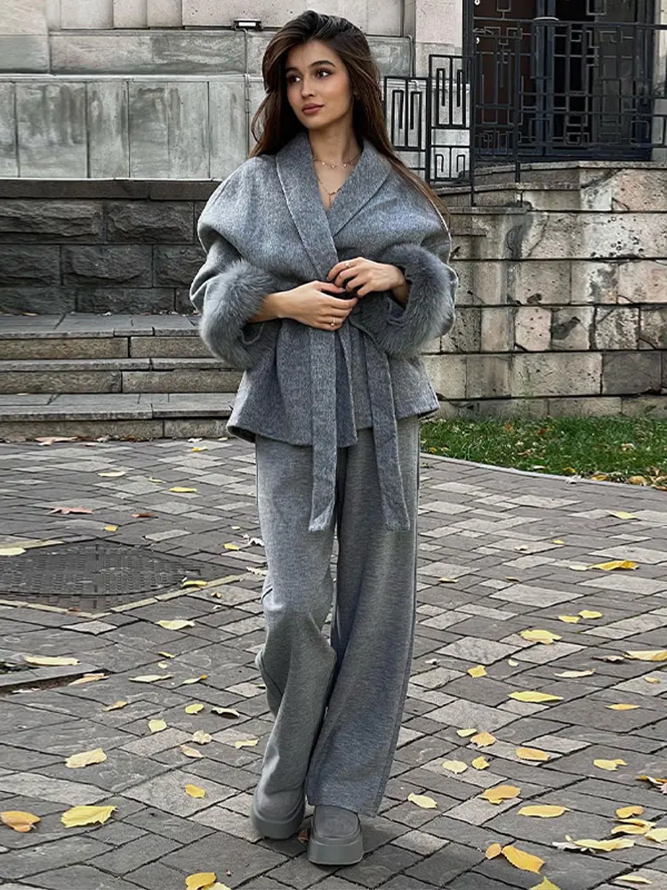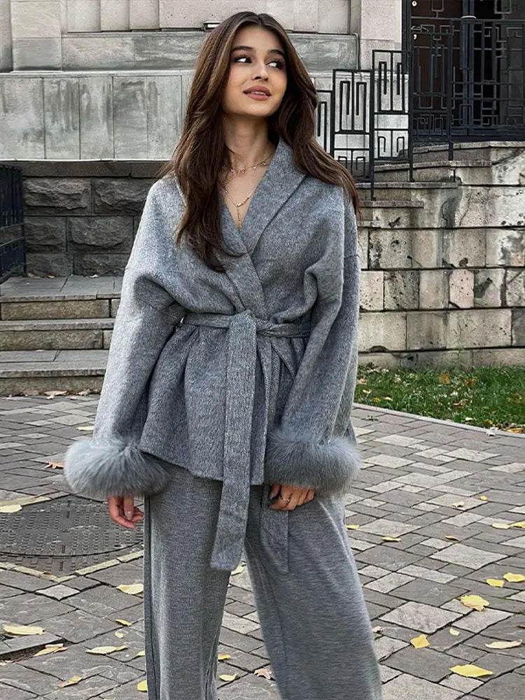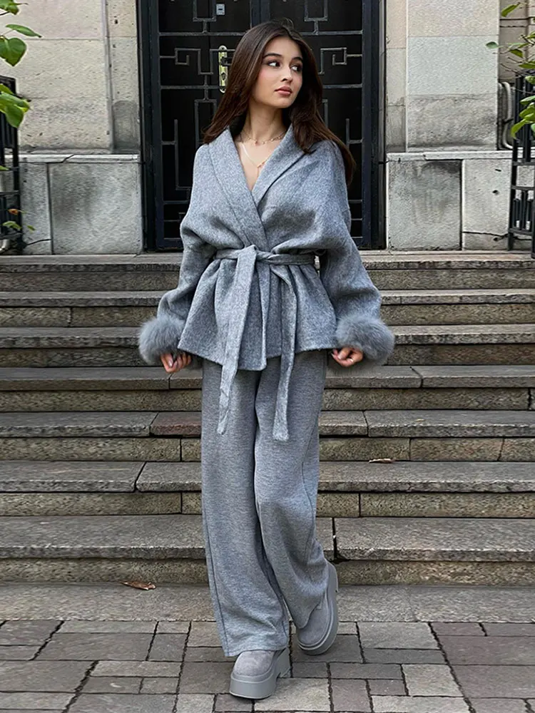 Grey Faux Long Sleeve Lapel Jacket Outwear