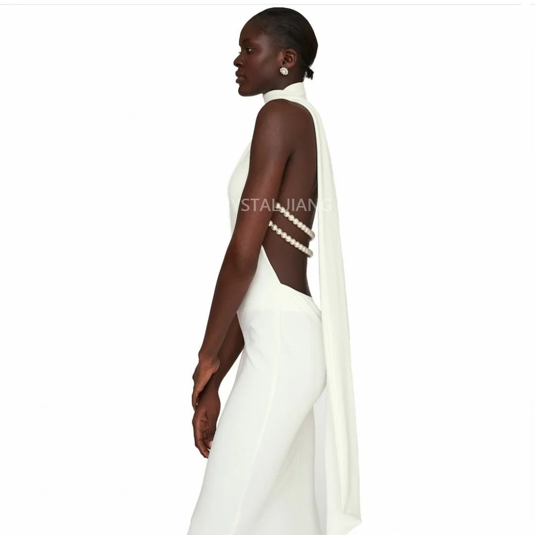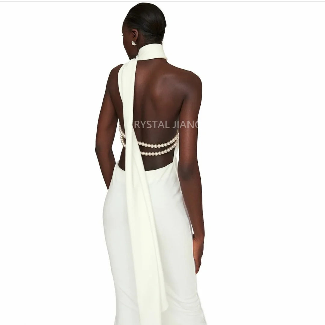 Ivory Wedding Dresses Long Haler Neck White Dress Sleeveless Backless Sheath Floor Length