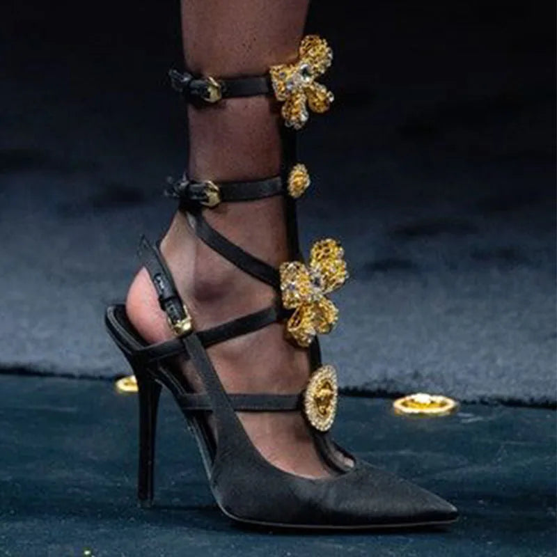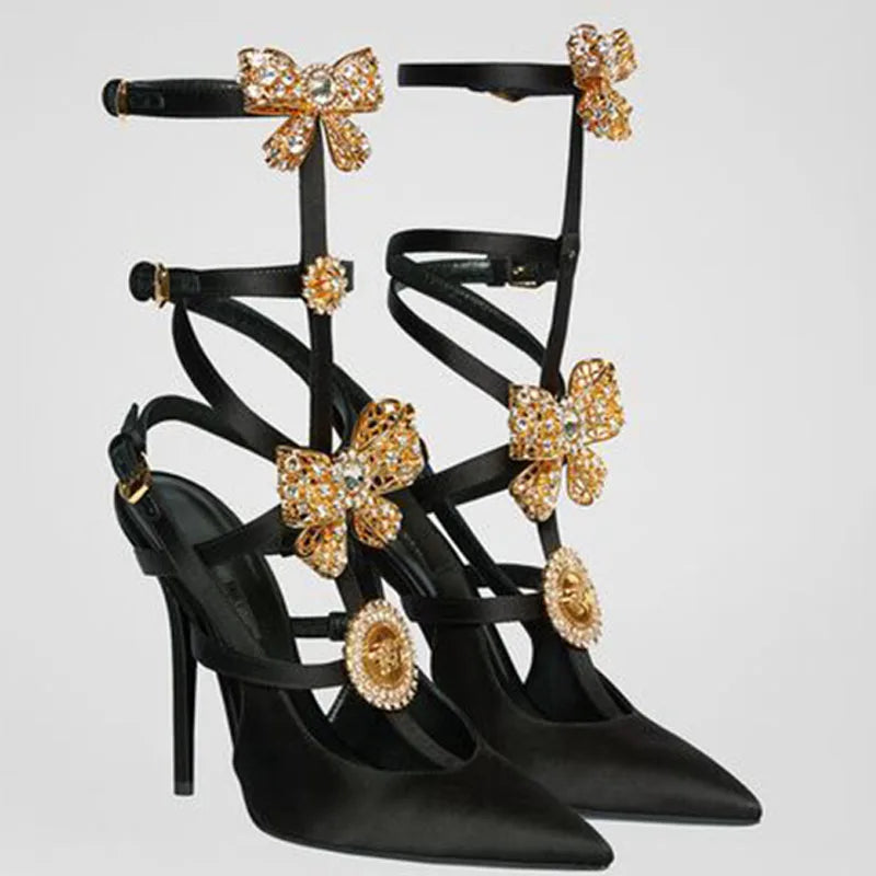 Luxury And Vintage Madrid Bow Rhinestone Pumps Party Wedding Design Sense Shoes