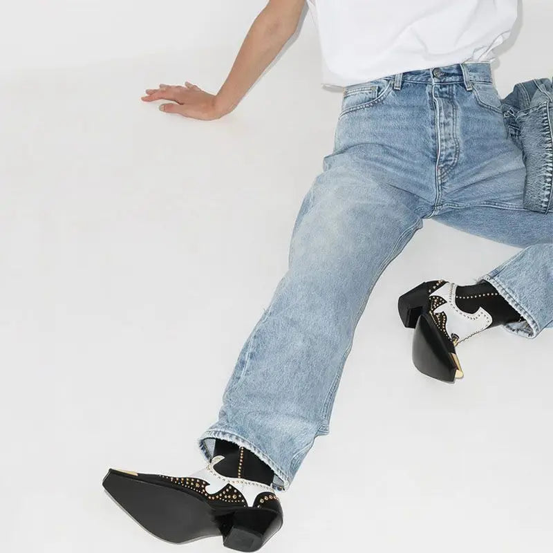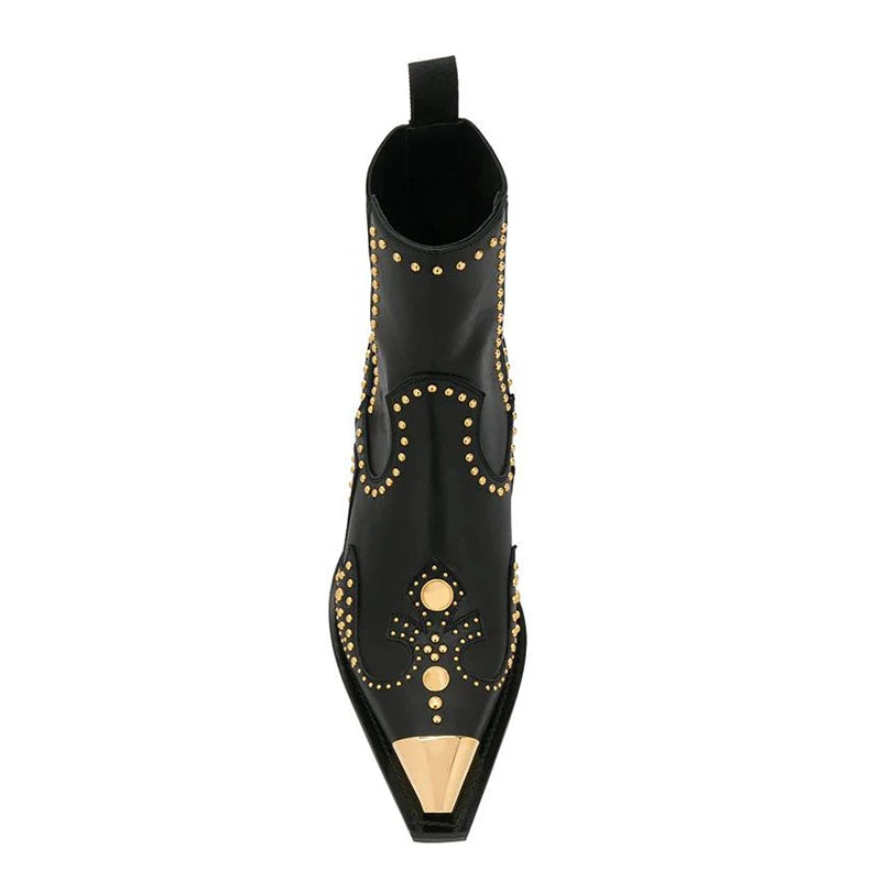 Luxury Brand Design Women Metal Rivet Genuine Leather Ankle Boots Female Handmade High Quality Slip-on Chelsea Boots Booties New