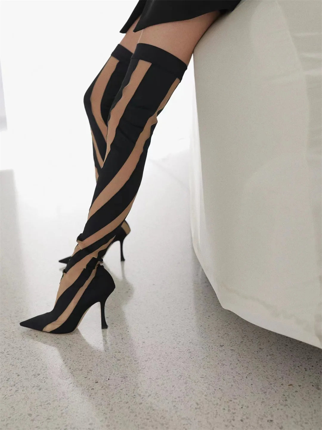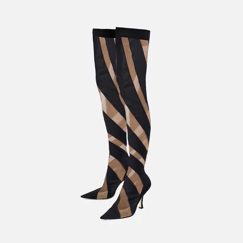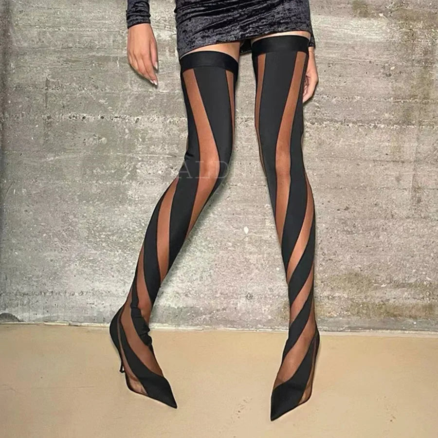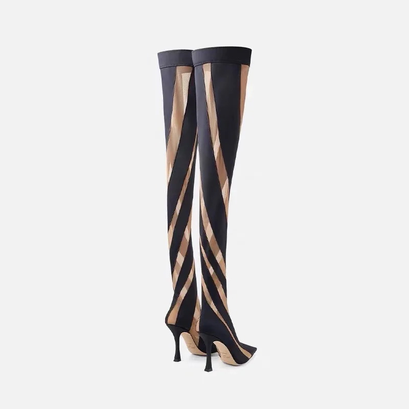 Mesh Over-Knee Elastic Boots Pointed Toe Thin Heel