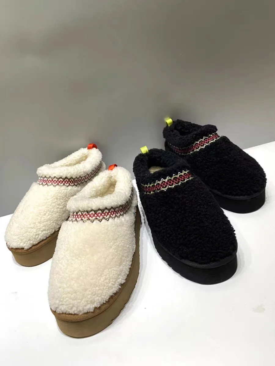 New Thick-Soled Heightening Bag Head Fluffy Slippers Outer Wear Fleece Warm Non-Slip Cotton Slippers Casual Women's Shoes