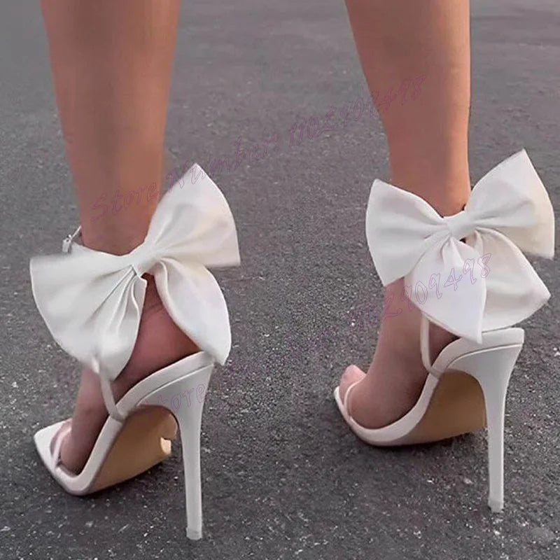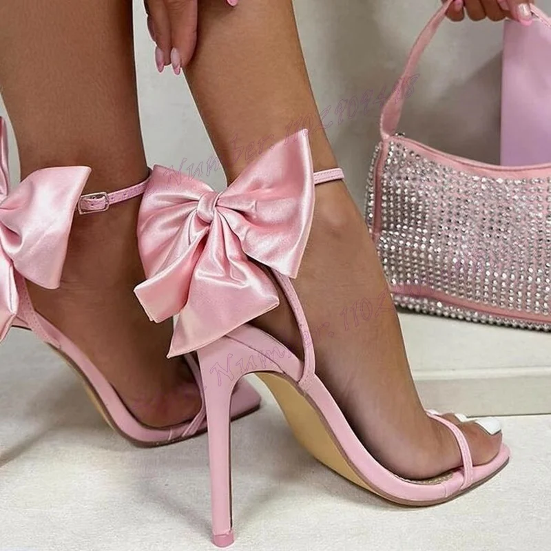 Pink Bow Knot Satin Sandals Slip On Open Toe Shoes