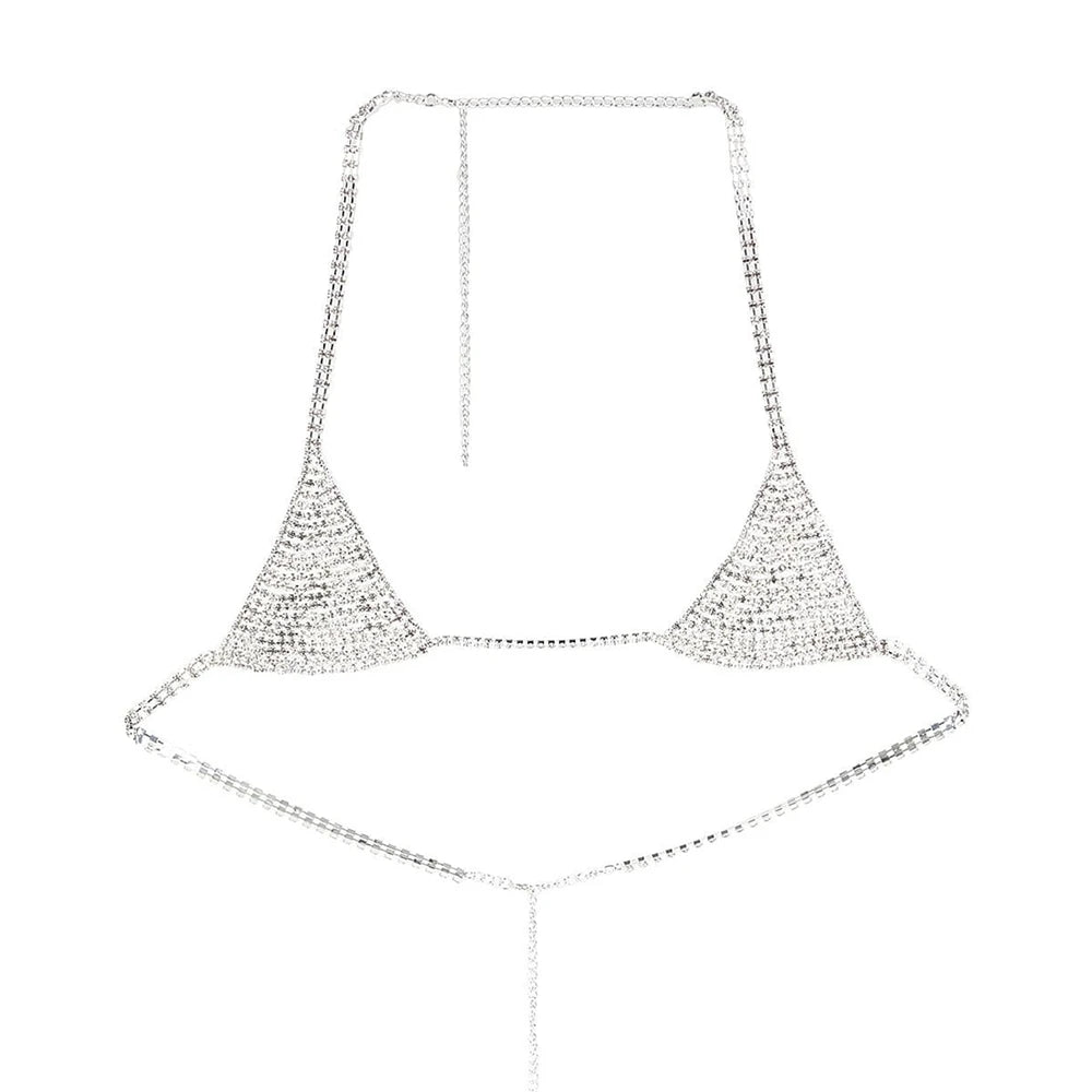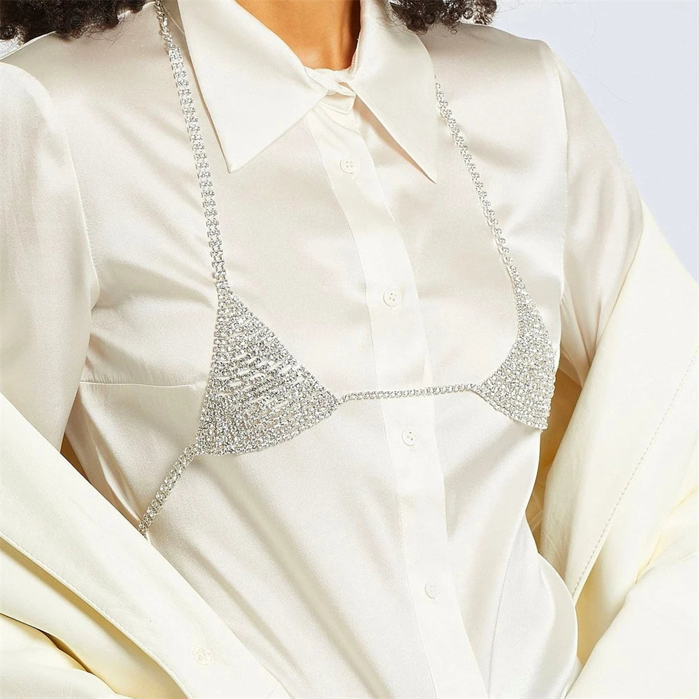 Triangle Cup Bra Chest Chain Cover Rhinestone Body Chain Accessories