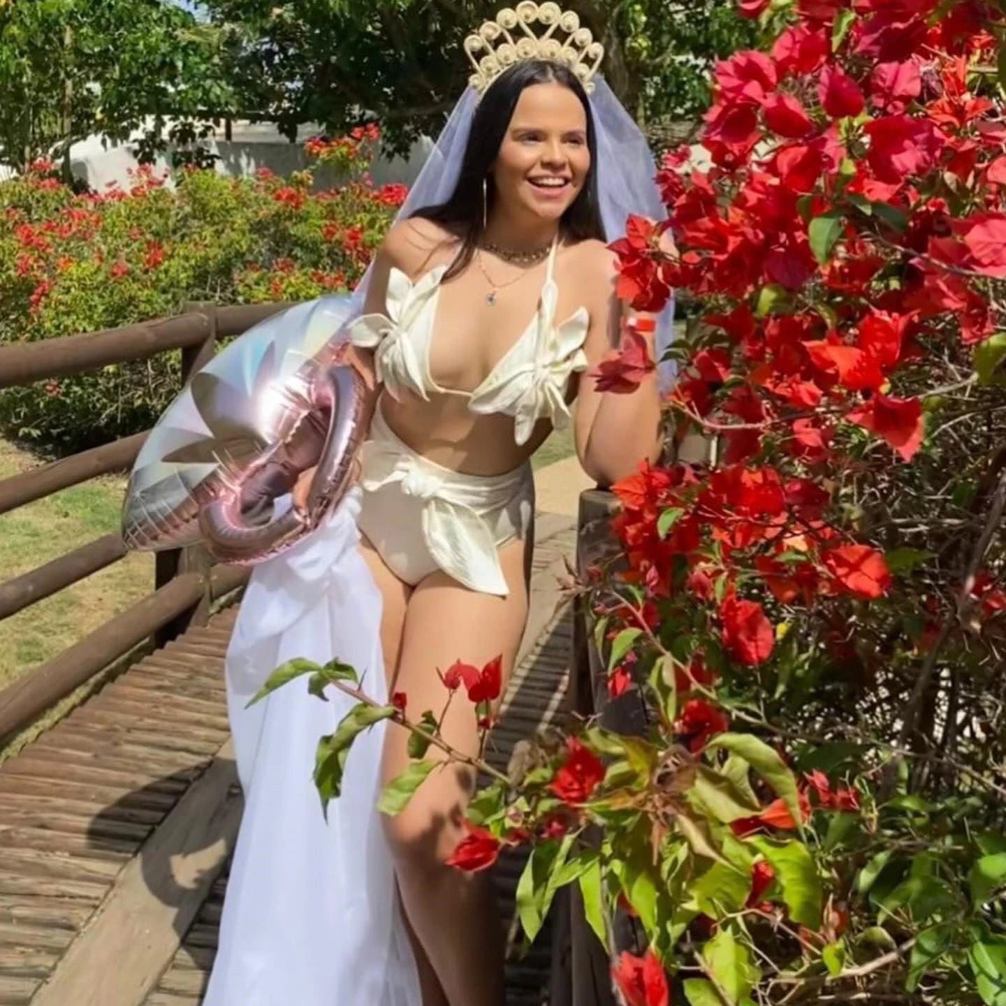 White Floral Lace Bikinis Women Swimsuit V-neck High-waisted Two Piece Bikini