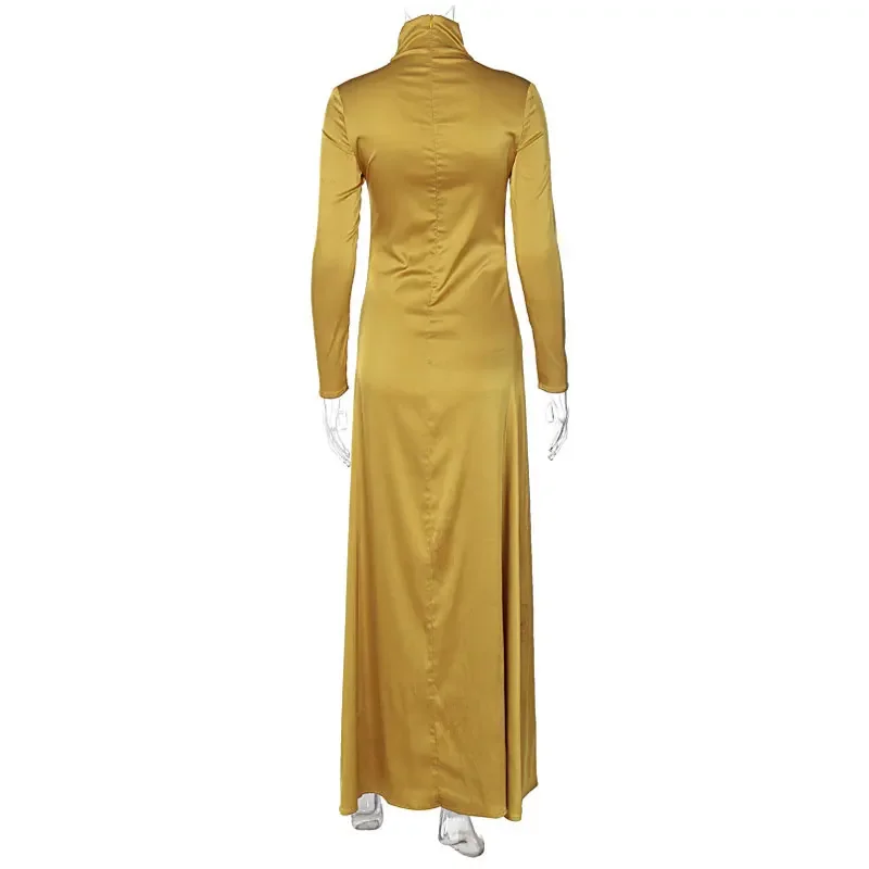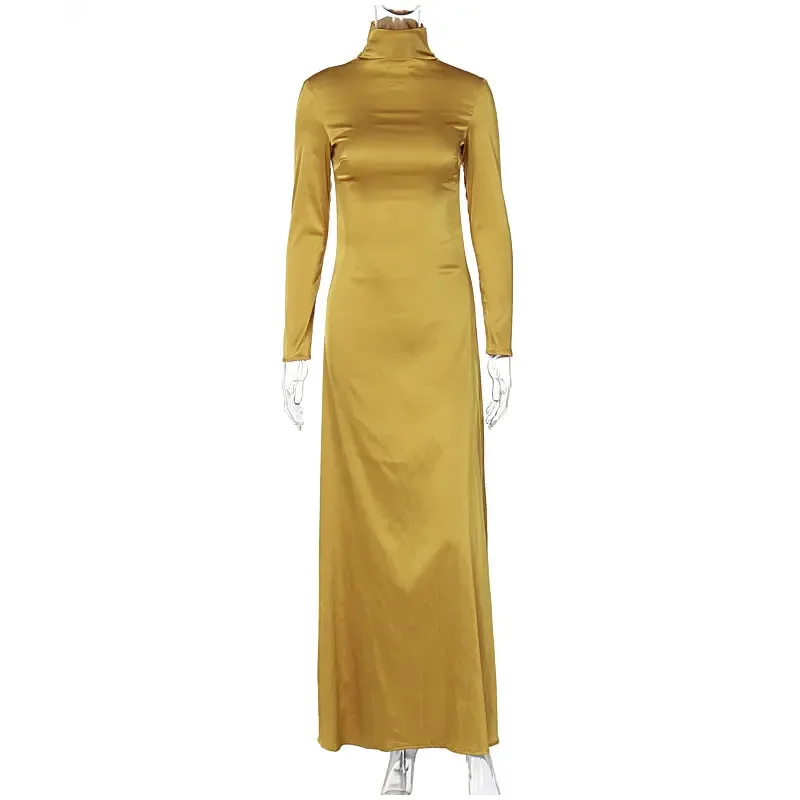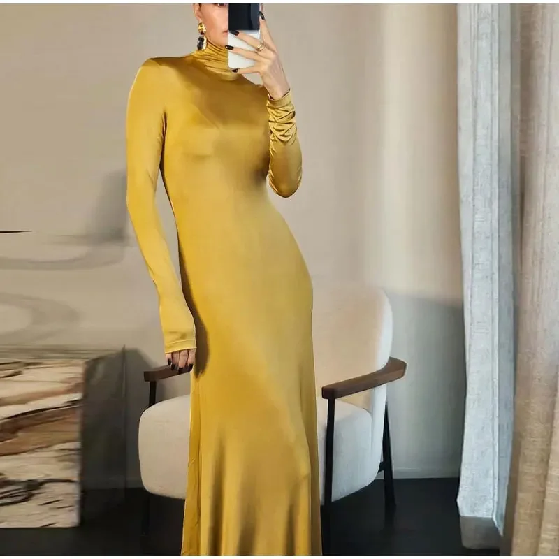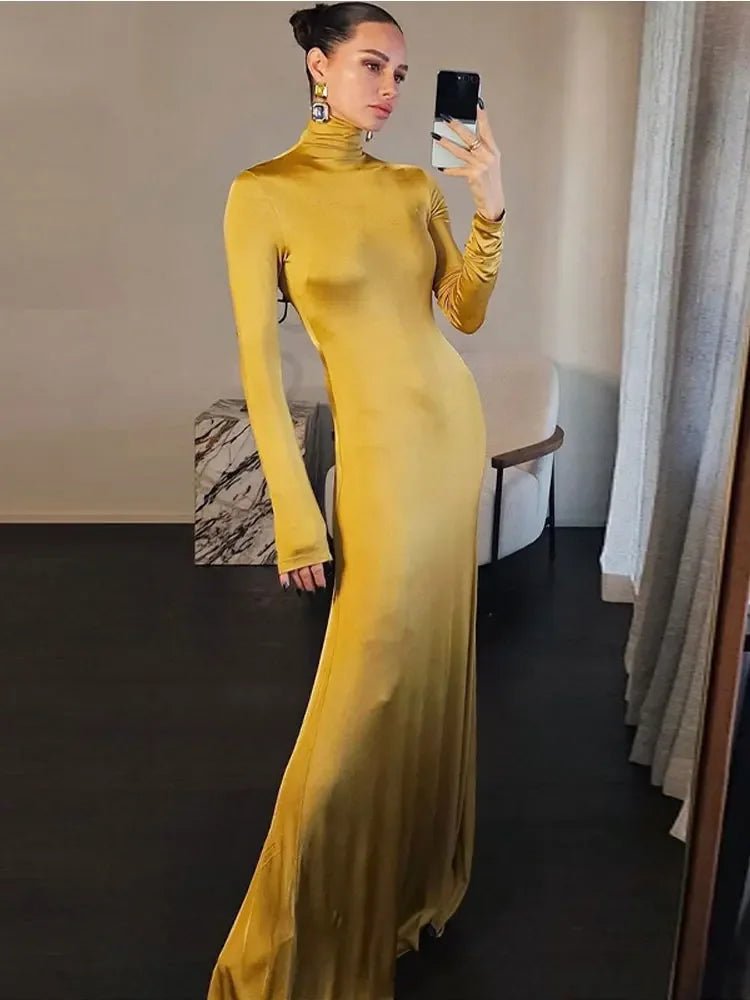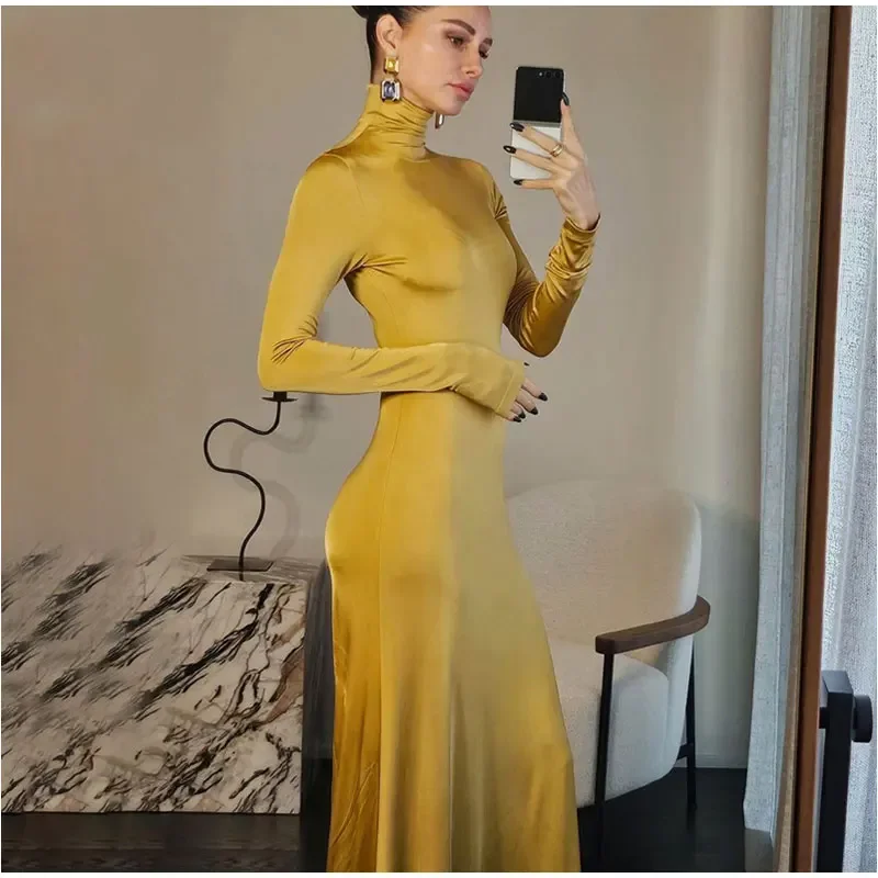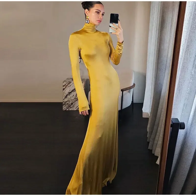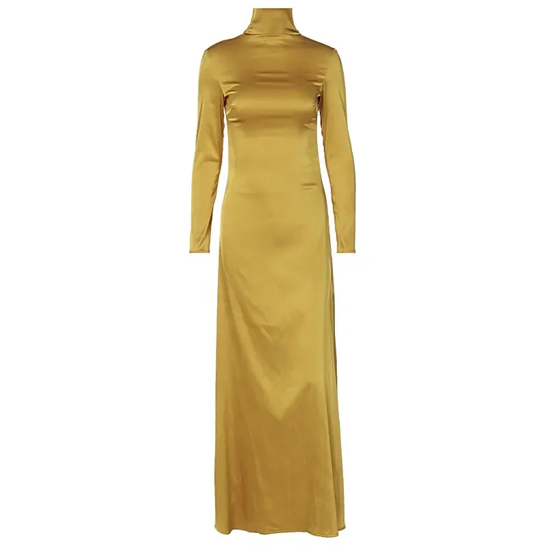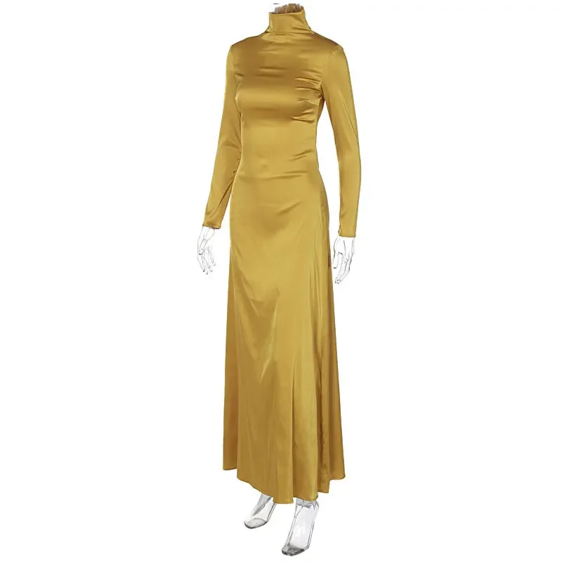 Spring Slim High Neck Glossy Maxi Dress
