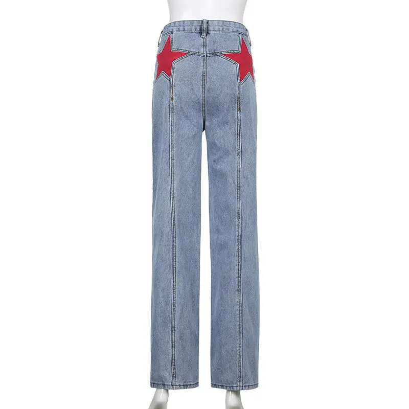 Straight Jeans Retro 5ive-pointed Star European and American style Denim Pants