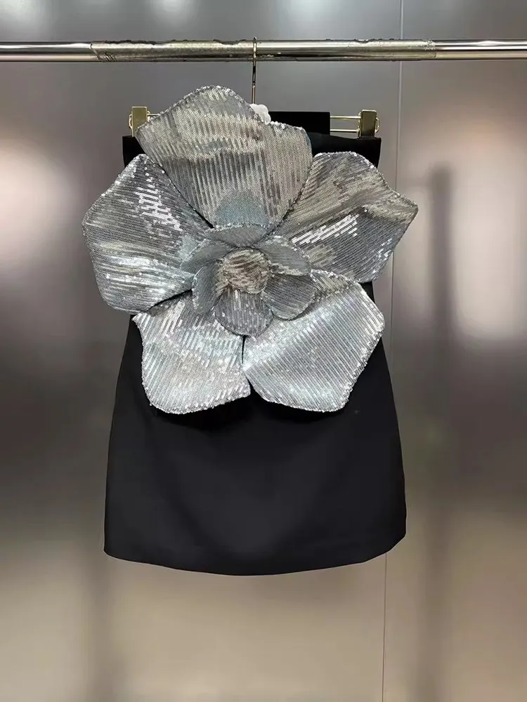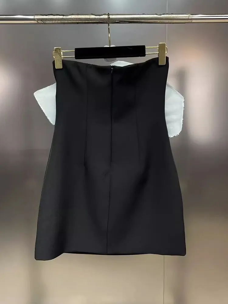 Strapless Sleeveless High Waist Spliced Zipper Flower Dress