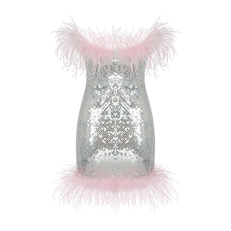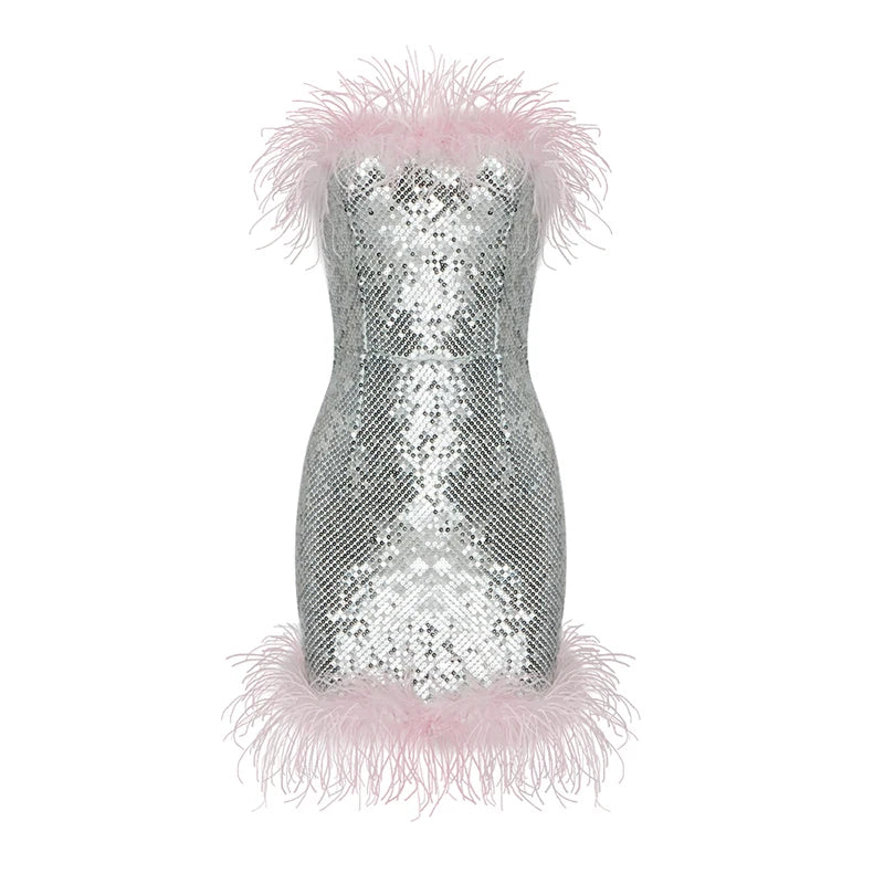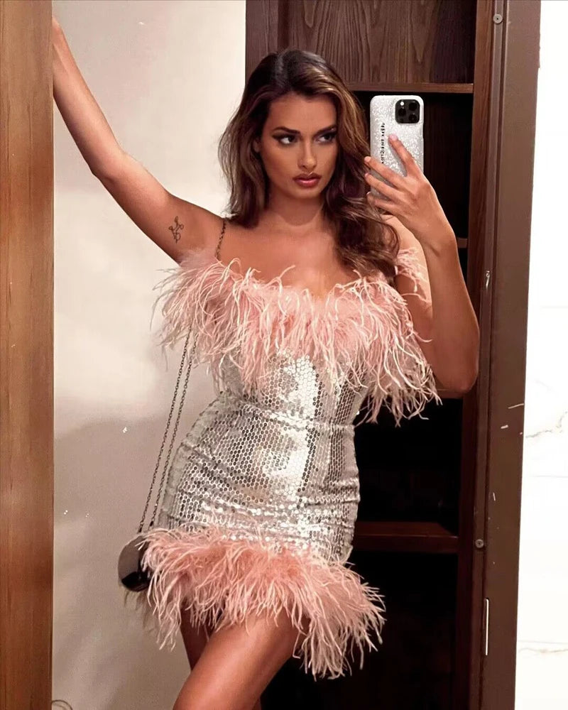 Feather Mini Evening Cocktail Party Dress