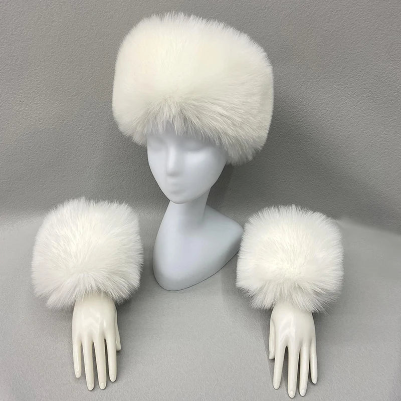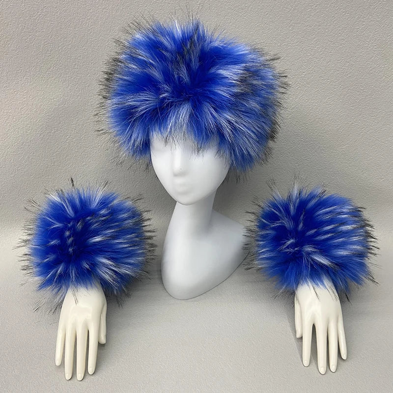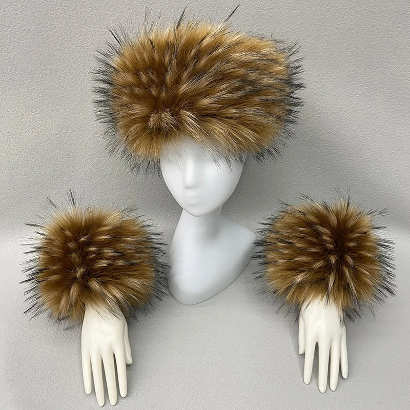 Ring Scarves Cuffs Faux Fur Raccoon Detachable Fur Sleeve Winter Luxury Warm Fox Fur Scarf Wrist Cuffs Gloves Set