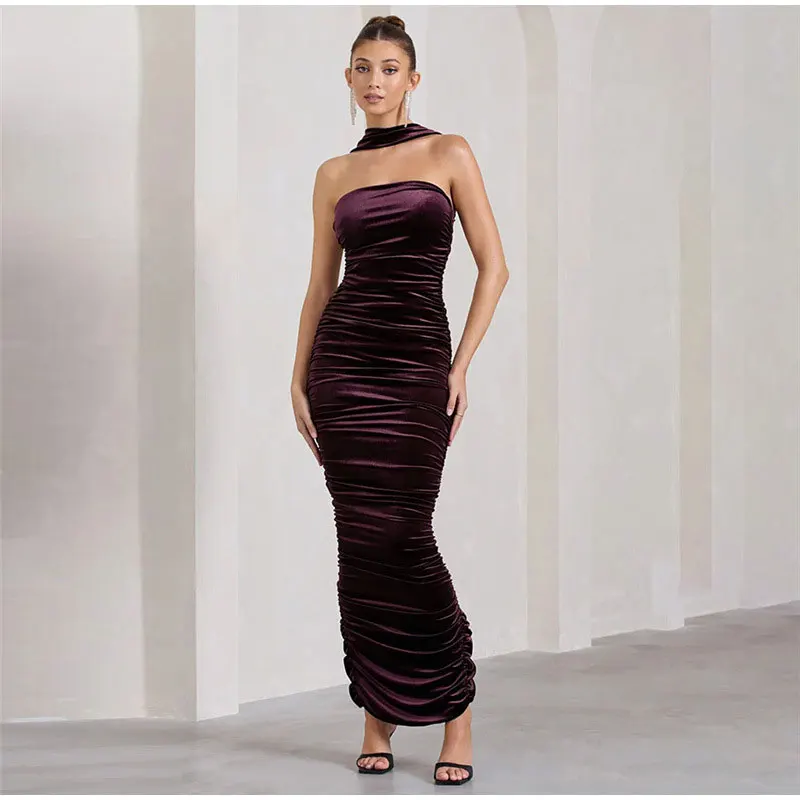 Pleated Velvet Maxi Dress